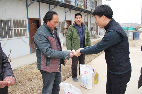 陳朋飛同志充分肯定了大家對(duì)公租房建設(shè)所做的貢獻(xiàn),他說:“你們是公租房建設(shè)的功臣,是你們的智慧和力量,是你們長(zhǎng)期以來的辛勞付出,這一座座高樓才得以拔地而起,我代表公司黨支部感謝你們!”隨后,陳朋飛同志代表公司黨支部將大米、白面、食用油等慰問品和500元慰問金分別送到三名農(nóng)民工代表薛敬軍、魚明星和陳新院的手中。